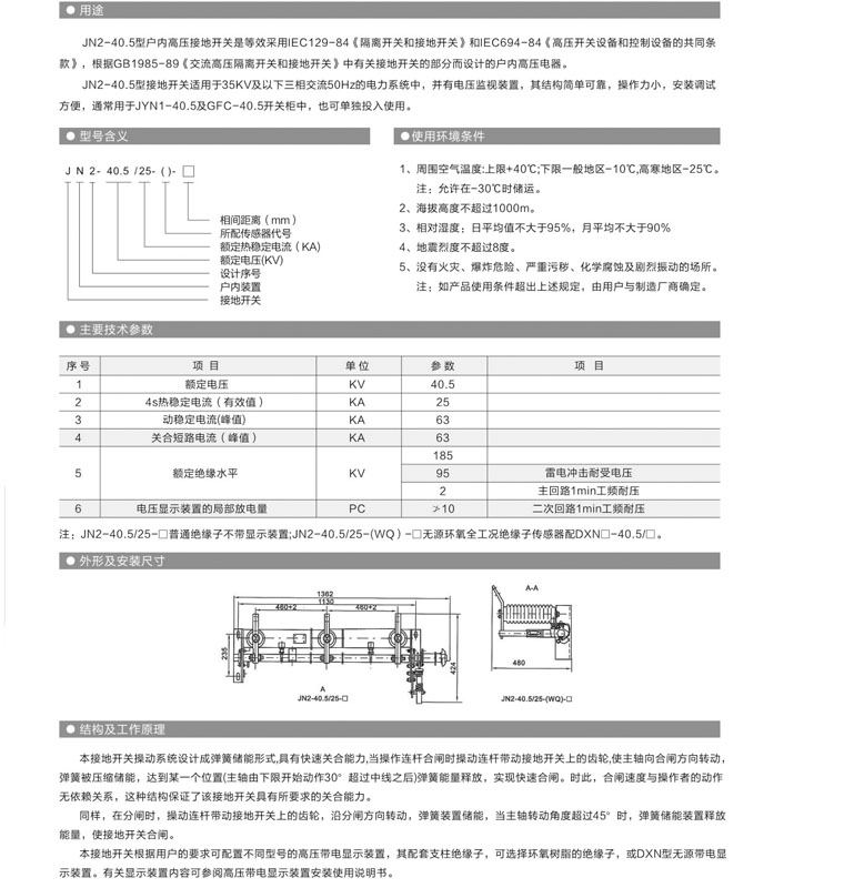 • JN2-40.5型戶內(nèi)高壓接地開關(guān)