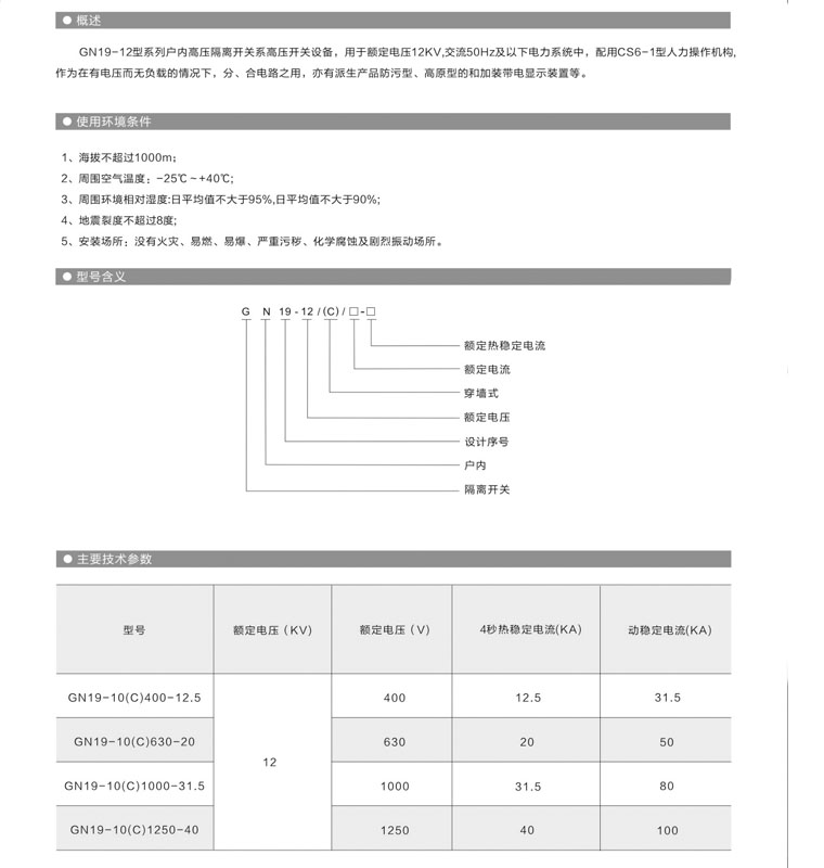 • GN19-12型系列戶內高壓隔離開關